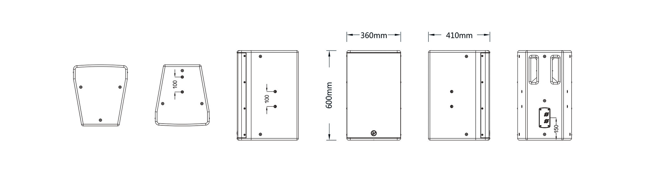 There are 10cm spacing suspension points specially designed for universal speaker hanger on three sides of the speaker, which can be suspended by universal speaker hanger. In addition, there are M8 corner yard hanging points on the front and rear of the speaker, which can also be suspended by hanging ring screws.